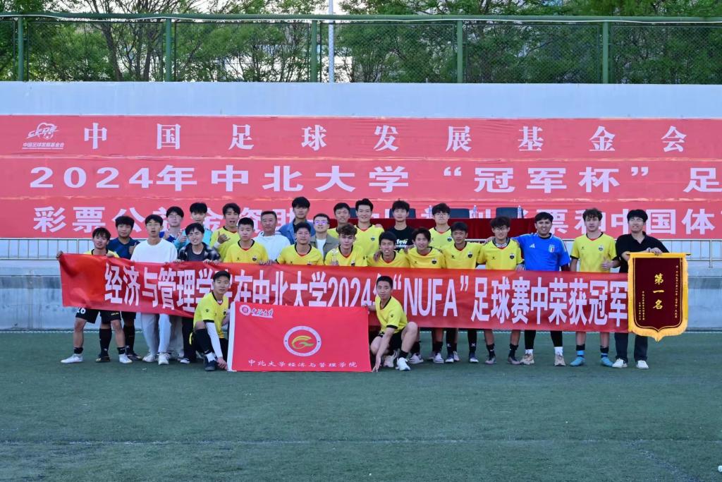 4月23日下午4点,中北大学2024年“冠军杯”足球赛冠亚军争夺大战于东区足球场精彩上演,经济与管理学院以3:0的比分优势斩获中北大学2024年“冠军杯”足球赛冠军。