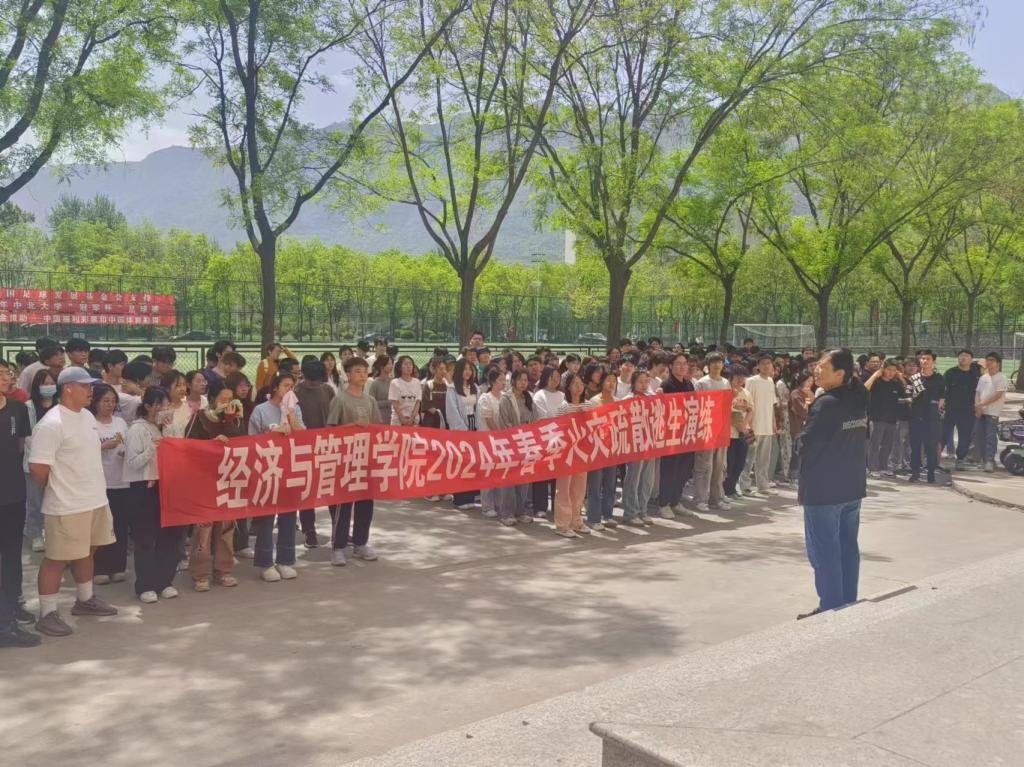 为培养同学们的消防安全意识,帮助同学们了解消防安全知识,提高同学对火灾的预防和处理能力,2024年4月25日, 经济与管理学院组织学生开展春季火灾疏散逃生演练,并邀请学生科李爱霞老师参加此次活动。