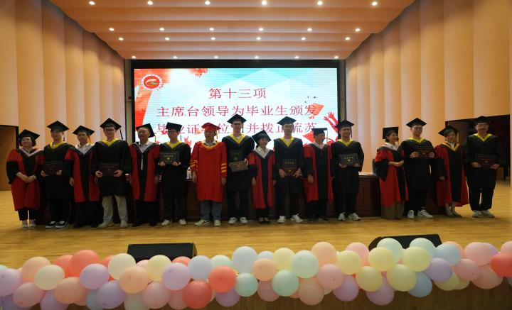 学位委员会委员为毕业生正冠拨苏,授予学位证书。每一位毕业生从老师手中接过象征荣誉和成就的证书。毕业典礼在全体师生高唱校歌中圆满结束。