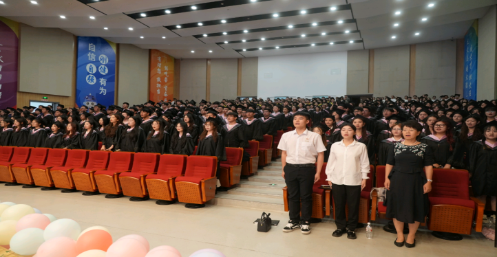 在庄严的国歌声中毕业典礼正式拉开帷幕。毕业纪念视频中的每一帧都写满了回忆、收获和祝福,纪念那些承载梦想的青春岁月。
