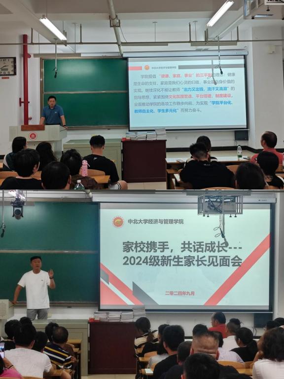 在新生来临之际,经济与管理学院于9月7日下午两点半在15106教室举办了2024级新生家长见面会。本次会议旨在加强家校之间的沟通与合作,共同为新生的大学生活保驾护航,学院院长赵公民、党委副书记屈有明出席会议。