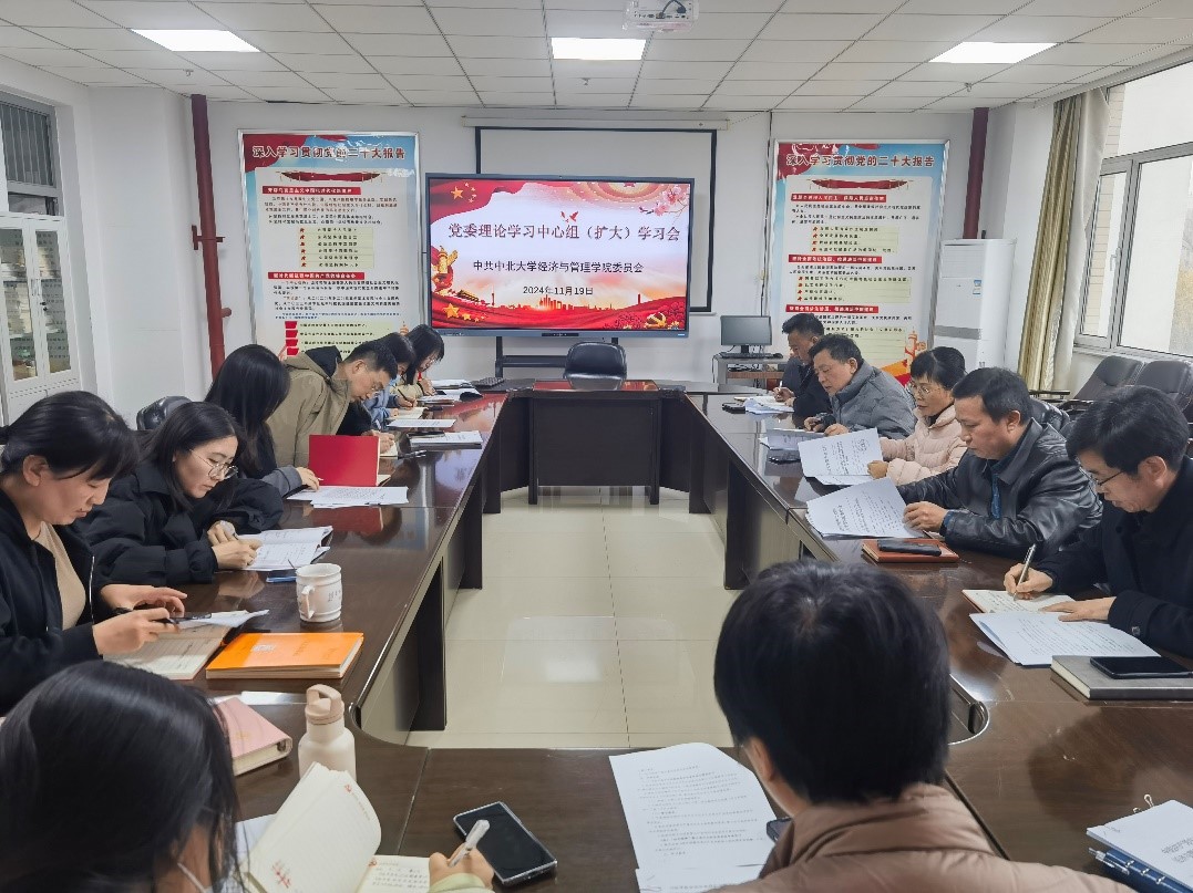 11月19日下午,经济与管理学院党委在逸夫楼南楼308会议室召开院党委理论学习中心组学习暨党风廉政教育会,学院领导班子、党委委员及各党支部书记参加了本次学习会,会议由院党委书记杜苇同志主持。会议专题学习了习近平总书记近期重要讲话精神,学习了党的二十届三中全会精神,同时进行了警示教育及先进典型事迹的学习。
