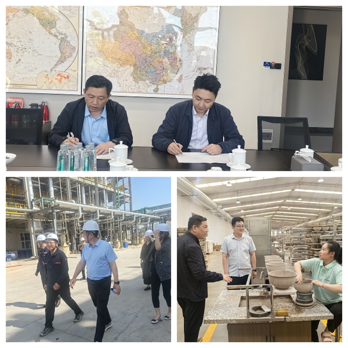 5月19日上午,赵院长带队一行走访了位于怀仁现代化陶瓷工业园区的锦泰陶瓷有限公司,公司总经理王晓春、经理段涛参加座谈。王总经理介绍了公司整体构架、业务发展现状及发展前景规划,在听取了校院发展及学生就业情况介绍后,他建议在学生培养过程中要重视在校生社会适应能力和职业素养提升,并表示公司急需经管人才,欢迎我院优秀毕业生来公司就职。随后,与会双方签订了实习实训基地建设协议,赵院长授予公司实习实训基地牌匾。