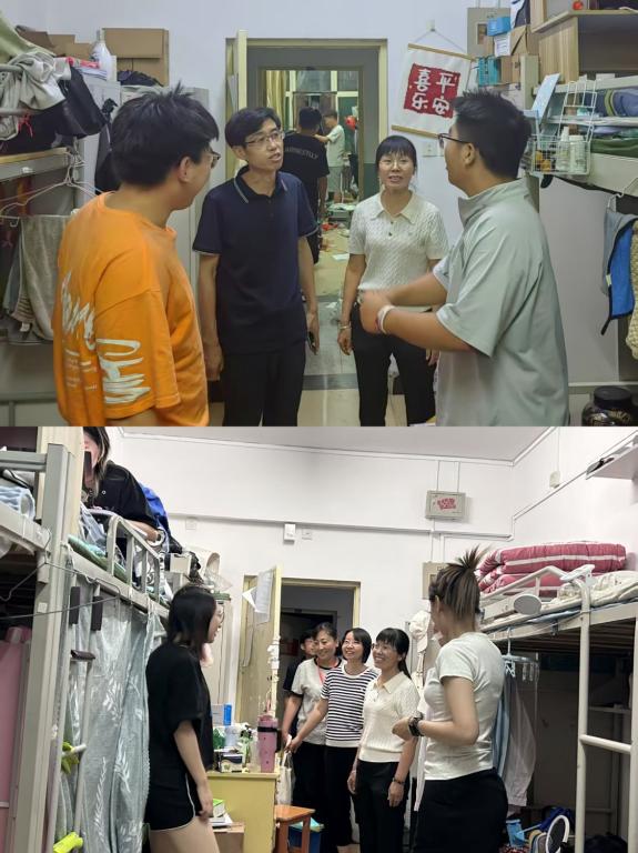 为进一步做好2025届毕业生离校工作,确保毕业生安全、平稳、有序离校,6月17日晚八点,经济与管理学院党委书记杜苇、党委副书记崔媛、副院长张克勇及毕业班班主任一同走访毕业生宿舍,为即将毕业离校的学生们送去关怀和问候。