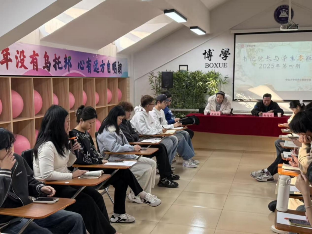 座谈现场气氛热烈,学生提问集中四大维度:一是考公与考研的路径选择、动态平衡与挫折应对;二是经管类专业就业方向、市场需求与求职策略;三是低年级学生如何系统性构建专业能力与综合素质双优势;四是面对升学或公考后的发展变化,如何实现适应性转型与持续成长。