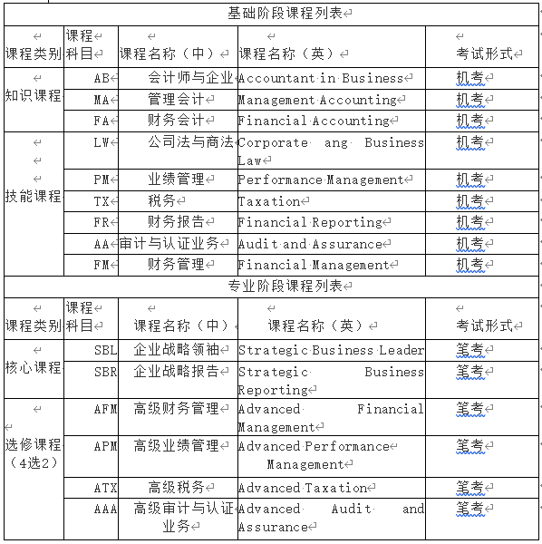 课程教学:ACCA 专业课程设置(采用全英文或汉英双语教学):