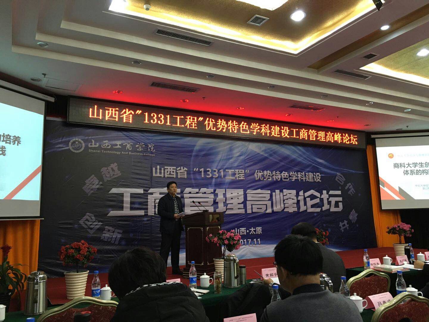 为了推动山西省工商管理学科的发展,11月18日,山西省“1331工程”优势特色学科建设工商管理高峰论坛在山西省工商学院隆重举办,中北大学经济与管理学院院长赵公民教授受邀做主题发言。