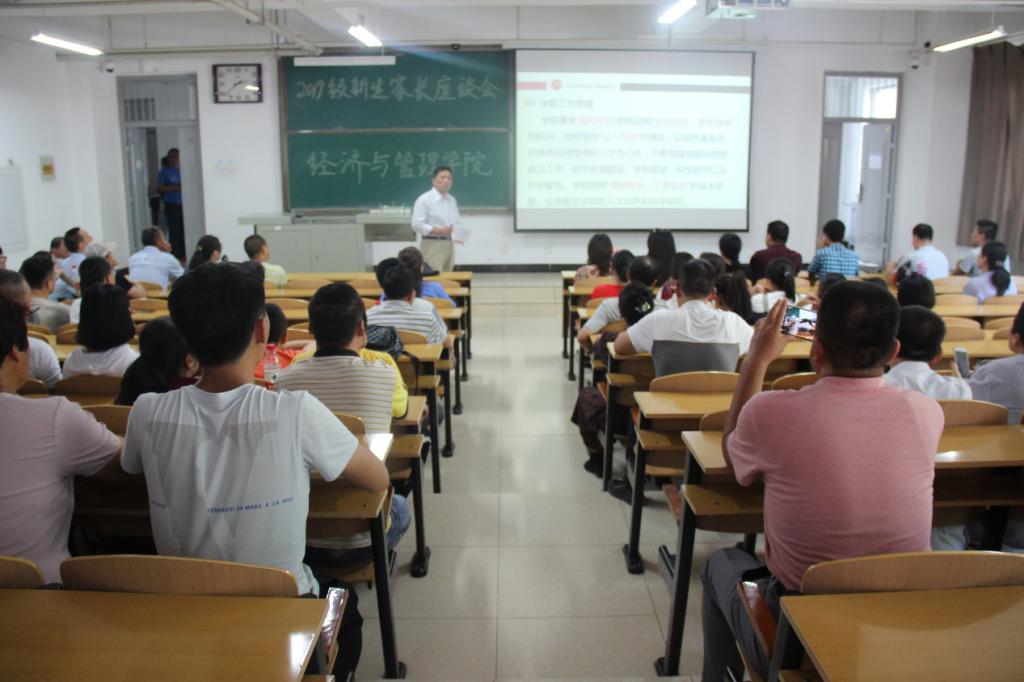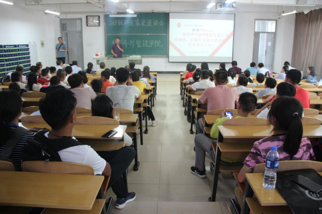 为促进家校联动,加深新生家长对学院的认知,解答家长关于新生专业、发展、生活等各方面的问题,更好地服务学生成长、成才的目标,经济与管理学院于9月6日下午14:30在15202教室组织召开新生家长座谈会。出席此次座谈会的有院长赵公民、副院长彭佑元、张克勇,党委副书记屈有明、团委书记那鹏飞、学生科科长李爱霞以及各位新生班主任和2019级新生家长。