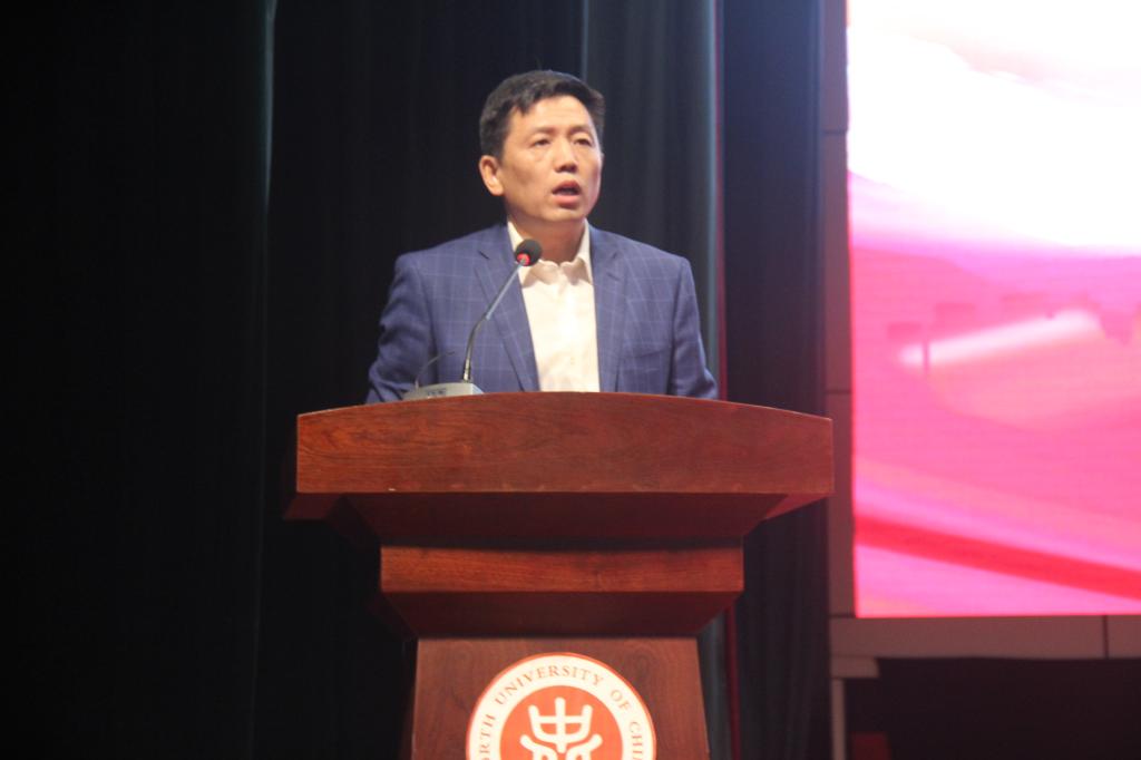 在庄严的国歌奏唱中,典礼正式开始,院长赵公民教授首先致辞,向2019级新生介绍了经济与管理学院发展历史,希望2019级新生不负诗与远方,牢记青春使命,勇担时代责任。副院长彭佑元、张克勇分别宣读2019级本科生与研究生新生奖学金名单,希望同学们勤奋学习,孜孜不怠。随后,学院领导对在此次迎新工作中辛苦付出的十位班主任助理发放聘书。在校学生代表刘佳蓓,新生代表吴晓涵,教师代表周娟美教授分别发言,刘佳蓓回忆自己在经济与管理学院的一点一滴,用自己的事迹鼓励同学们投身于学习与学生工作及社会实践。周娟美教授多次用激情昂扬的发言与同学们互动,鼓励同学们将个人的成才抱负融入为最广大人民造福之中。最后,党委书记王琳教授讲话,告诫同学们做人做事立德为先,学会独立,将自己定位到更高的目标之上。典礼结束后,党委副书记屈有明再次提醒同学们国庆期间安全问题,希望同学们提高防范意识,保护自己。