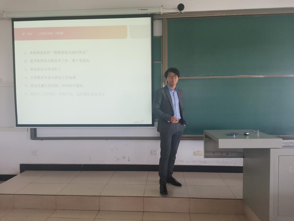 刘泽是经济学,管理学学士,管理学硕士。曾任浦发银行信贷经理,兴业银行支行行长等,现任东方证券运城营业部总经理。刘泽自2009年07月参加工作至今担任机构负责人已经8年,拥有非常丰富的工作经验。刘泽主要就以下三部分讲述了他的观点。第一,大学毕业是人生转折的第二次机遇。刘泽谈到毕业生的价值主要体现在时间和实质价值上。第二,步入职场成功的关键词——企图心和自律。要有强大的成功的意愿,并且良好的自律是保证其成功实现的重要保障。第三,金融企业如何细分选择,他谈到,挑选企业的时候首要看的是这个企业的风控能力其次才是规模和盈利。讲坛上刘泽用诙谐有趣的语调为在座的同学们讲述自己的工作经验和对同学们的工作建议,掌声不断,精彩纷呈。同学们纷纷表示从刘泽学长身上学到了很多的闪光优点,明白了很多的求职就业与创业的经验。