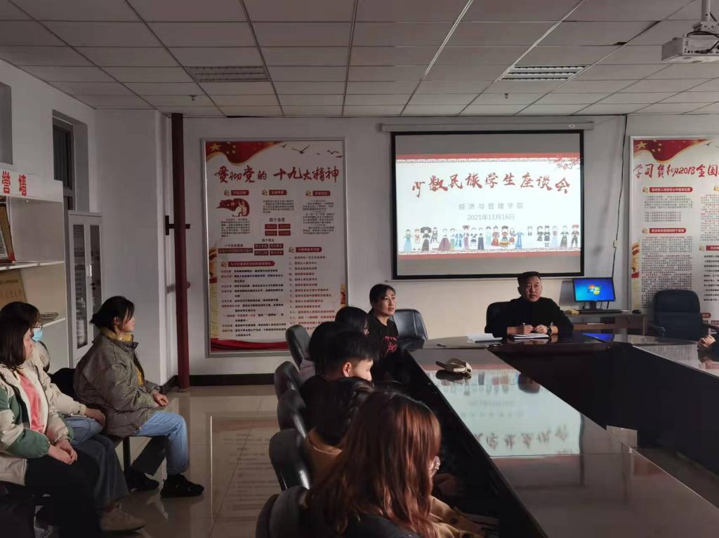 为进一步加强与少数民族学生的沟通和交流,全面了解我院少数民族学生学习、生活情况,不断提升少数民族学生教育管理水平,经济与管理学院于11月16日在逸夫楼308会议室召开少数民族学生座谈会。经济与管理学院党委副书记屈有明,学生科科长李爱霞以及大一大二年级少数民族学生参加本次会议。