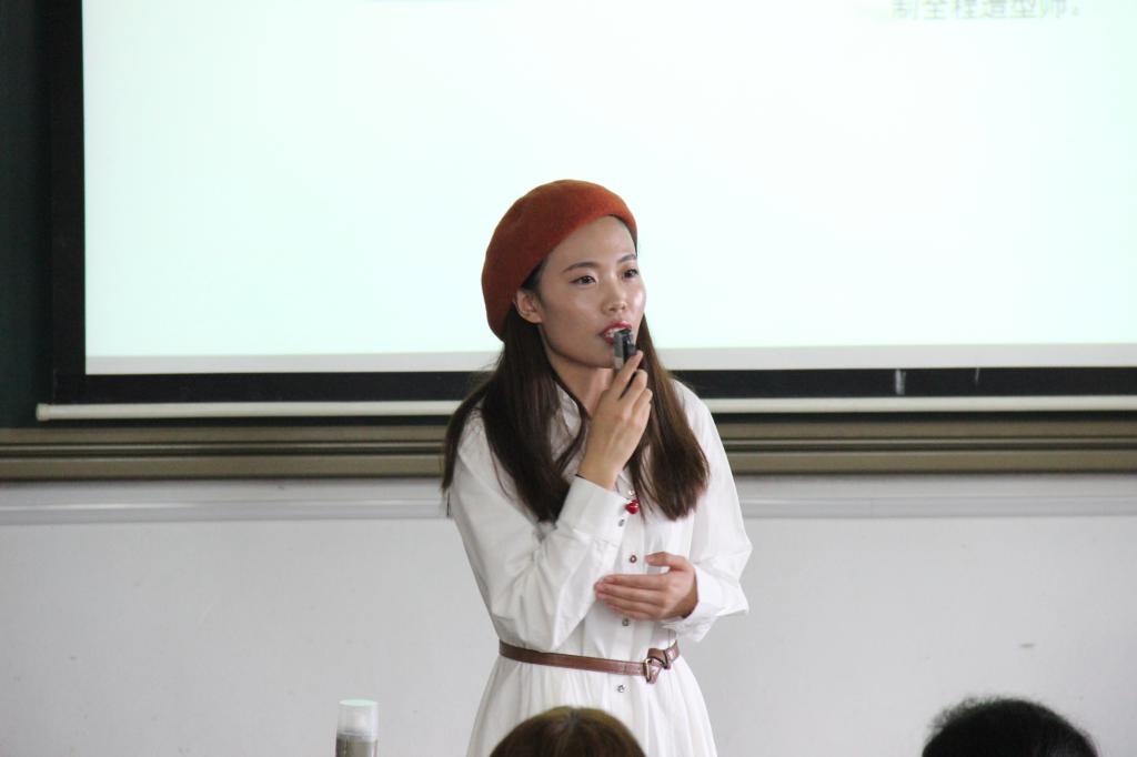 本次讲座的主要内容是职场形象、服饰搭配和彩妆指导。讲座中,要老师首先介绍了护肤基本知识以及彩妆基本流程和注意事项,并强调了职业形象的重要性。为了让在场同学对化妆流程有更加直观的了解,要老师邀请了一位学生做现场化妆演示,向同学们讲解化职业妆的方法及注意事项;蒋龙老师为学生打造专属于职场的发型。最后,要老师说明了彩妆的技巧及皮肤保养问题,告诉同学们如何正确使用化妆品以展现更好的皮肤状态。讲座活泼生动,贴近生活,在场同学认真聆听。