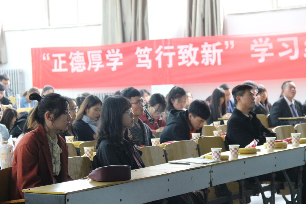 为了激发我院大一学生的学习热情,使其适应大学学习生活,10月15日下午3点,由经济与管理学院学生会学习部举办的"正德厚学,笃行致新"学习经验交流会在07101H教室拉开帷幕。我院团委副书记那鹏飞、学生科老师买璐璐及其他各个学院学习部部长和我院部分学生会干部出席会议。