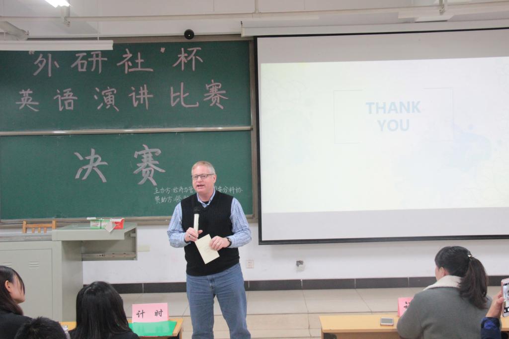10月28日上午9点,由经济与管理学院团委分科协举办的“外研社”杯英语演讲比赛决赛在15202H教室顺利举行。外教老师郝帅作为嘉宾出席现场,往届优秀选手、Polly英语口语协会学生干部代表出席并担任评委。