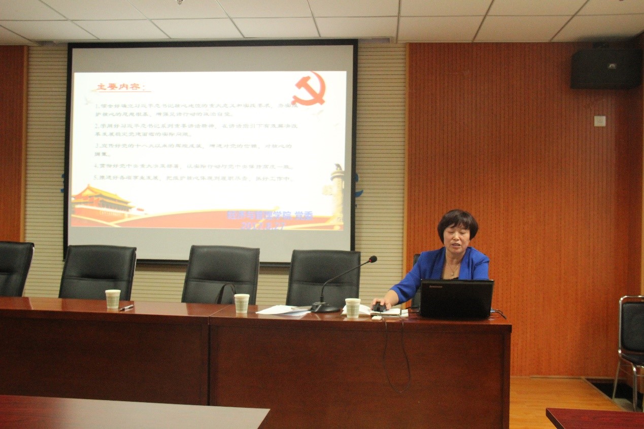 培训会开始,王书记首先号召在座各位学生干部关心时事政治和国家大事,响应十九大精神,不忘初心,牢记使命,时刻坚定理想信念,争做志存高远的新青年。王书记强调,学生干部应具备思想政治觉悟,不断提升政治理论水平,始终在思想上、政治上和行动上与党中央保持高度一致。她阐明学生干部是党团组织的得力助手,应认真履行工作职能,打破思维定式,不断开拓创新,以培养学习楷模、工作典范及人格魅力为目标提升综合素质修养。同时,她鼓励在座的各位学生干部应积极发挥模范带头作用,积极向党组织靠拢,主动把个人理想融入中国特色社会主义共同理想,牢固树立中国特色社会主义道路的坚定信念,始终与民族同命运、与祖国共奋进。