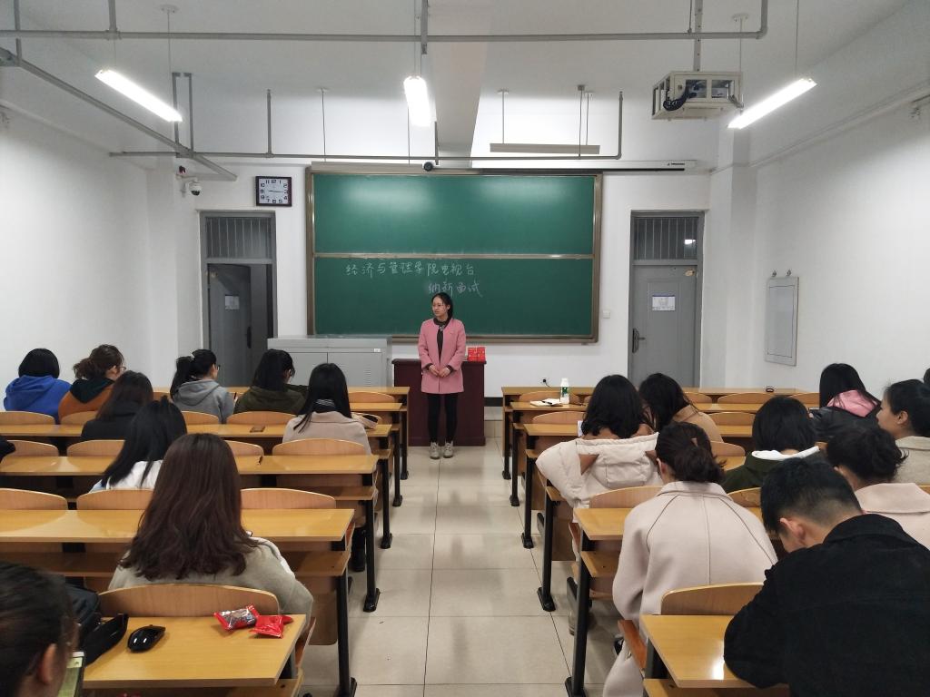 为强化我院新闻传播的影响力,让师生更为直观形象地了解身边热点,经济与管理学院电视台正式成立。3月17日上午9:00,我院于15104H教室举办了经管电视台纳新面试会,广纳贤才,共传佳音。部分团委学生会干部出席并对面试者进行考核。