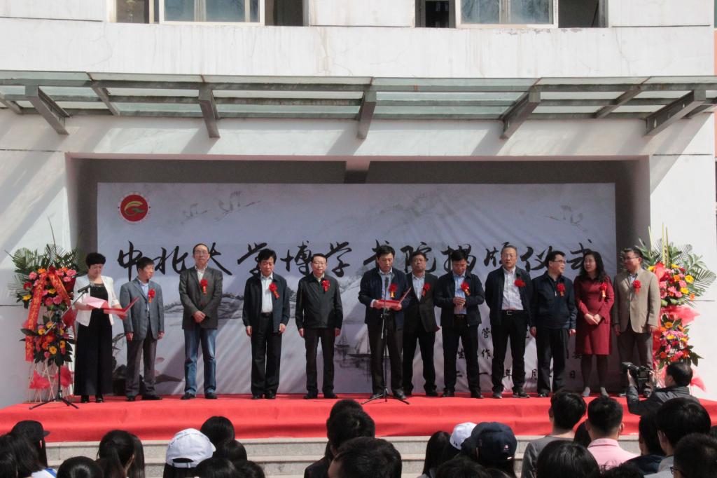为庆祝中北大学经济与管理学院博学书院的建立与完善,我院于4月20日上午10点,在怡丁苑1号楼南门举行博学书院的揭牌仪式。主持本次仪式的是院党委书记王琳,校党委书记李忠人、校党委副书记薛智、副校长雷锋斌、党校办主任叶玉刚、宣传部部长薛实军、学生工作部部长尹建军、校团委书记李俊华、后勤党总支书记白振峰、人文社会科学学院党委书记雷丽蓉和党校办公室副主任胡向明出席此次仪式。