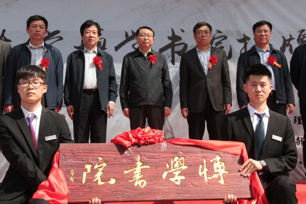 此时迎来了揭牌仪式的高潮。校党委书记李忠人、校党委副书记薛智、副校长雷锋斌为中北大学博学书院揭牌,“博学书院”四个金字赫然而出,矫若惊龙。揭牌完成后,校党委书记李忠人作出了重要讲话,他认为博学书院作为校园文化风景线,发挥着延伸学习、师生对谈、价值培育的作用。他还提出博学书院未来的发展方向:既要继承传统立足于宿舍区域,又要结合经济与管理学院实际,拓展多元化功能区。最后,他对经济与管理学院在书院建设方面的带头作用表示了认可和赞许。