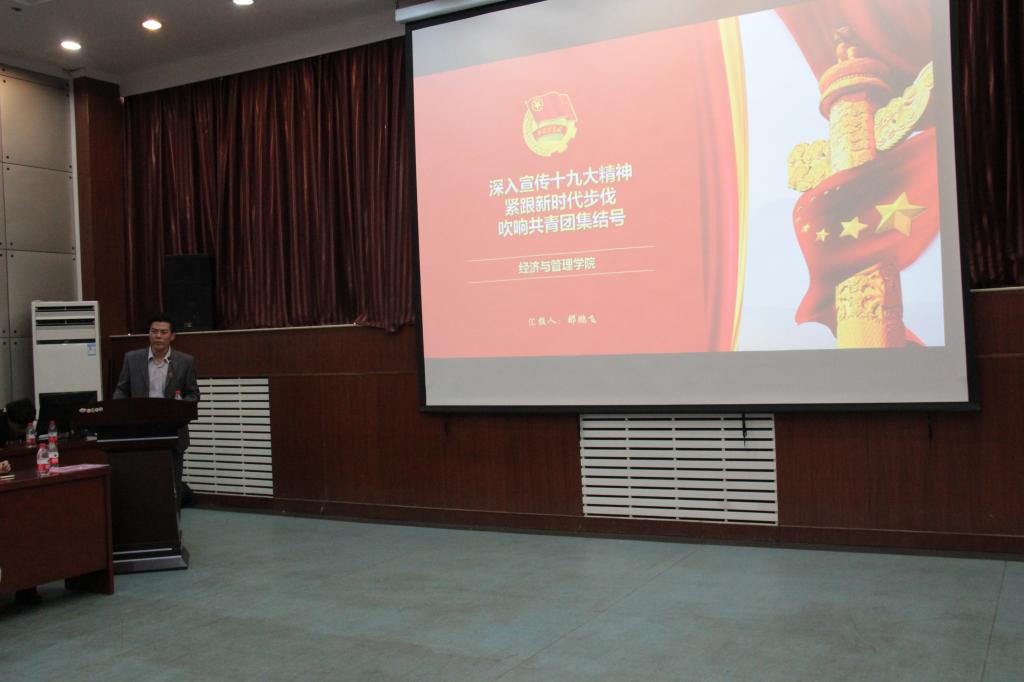 各学院团委按照抽签顺序依次答辩,从思想,组织,制度,学风等多个方面展现建设成果。图文结合,声色并茂。其中,我院团委从五大工程、品牌活动以及创新发展三个方面对2017年度我院团建工作进行了汇报答辩。那老师首先陈述了我院团委在过去一年中于思想、制度、素质、文化、实践五个方面的引领工作及工作成效。随后向大家展示了经管春季双选会、模特大赛、元旦师生联谊会等经管品牌活动,展现经管风采。最后,那老师为大家详细介绍了我院集宿舍文化、宿舍区域文化、自习室文化、楼道文化共同构成的博学书院文化体系,以及我院团委思想宣传新阵地——经管传媒的运行状况,表现出我院团委锐意进取的积极态度和不懈创新的未来展望。