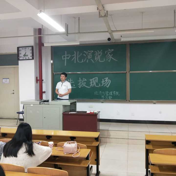 为了丰富大学生活,5月4日晚7点,由经济与管理学院团委学生会学习部主办的"中北演说家"院级选拔赛于15106教室顺利举行。我院多名学生积极报名参加,往届优秀选手出席并担任评委。