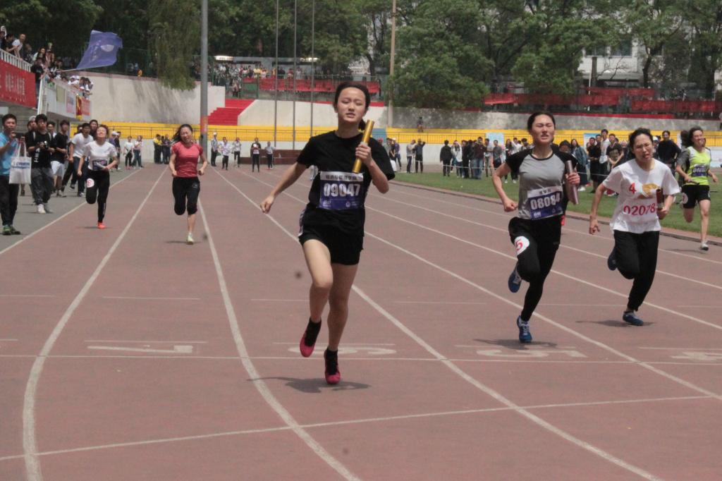 雷鼓阵阵旌旗展,赤心拳拳不畏难。经济与管理学院首次征战是男子组110米栏预赛和混合组旋风跑预决赛。在旋风跑比赛中,我院运动员齐心协力紧抱着红色的大棍、完成两个旋转后直冲终点,为我院取得了第四名的好成绩,可谓是旗开得胜!热情的火花继续迸发,200米的路途在运动健儿的脚下熠熠生辉,他们宛如弦上利箭,势如破竹;5000米的长征是耐力和韧力的检验;4×100米是速度和激情的传递与升华。一路奋战,经济与管理学院运动健儿荣获跳大绳第五名、女子组200米第二名、女子组400米和800米第三名、女子组后抛实心球第五名、团体立定跳远第三名、男子组4×100米第七名。在女子组4×100米接力赛中我经管女郎不负众望,拔得头筹;在男子组跳远比赛中我院学子李中正以绝对优势勇夺桂冠!