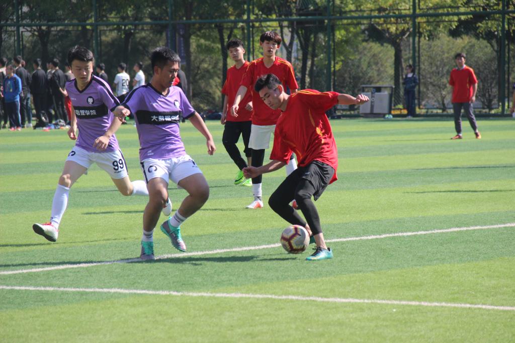 双方队员跃跃欲试,摩拳擦掌。裁判一声令下,比赛正式开始。运动员们身姿矫健,势如破竹,极力向对方的球门进攻。欢呼声骤起,我院队员张彧飞踢进本场第一球!在进球的激励下,我院队员所向披靡,攻势不断,上半场进入白热化阶段。大数据学院临危不惧,仍保持着行云流水的配合,连续两次向我方带球,但均被我方守门员拦下,错失良机。在大数据学院的强烈攻势下,我方队员以攻代守,打出一连串精彩配合,打入第二个进球!中场休息后,下半场比赛开始。大数据学院奋起直追,打出几次有效进攻,但是我方队员乘胜追击,在成功拦下对方的几次进攻之后。我方球员带球冲击对方阵地,脚力全开,成功射门,再得一分,我方球员张彧飞上演帽子戏法!尽管三球领先,我方依然保持着高水平的发挥,球员胡锦利用角球直接破门得分,又进一球。全场观众都为这精彩绝伦的对战欢呼呐喊。比赛后期,大数据学院功夫不负有心人,点球破门,赢得一球!比赛最终以经济与管理学院四比一大数据学院的成绩落下帷幕。