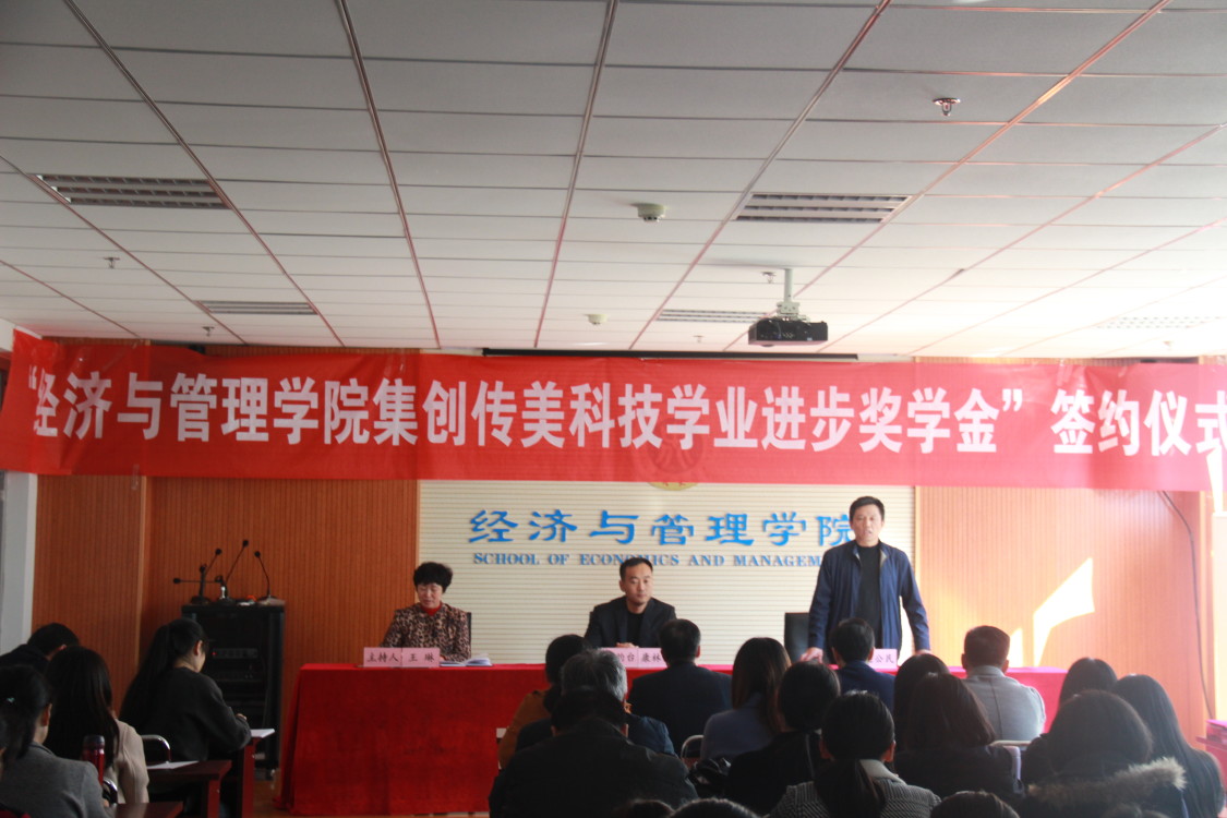 10月16日下午,山西集创传美科技有限公司与中北大学经济与管理学院设立的“经济与管理学院集创传美科技学业进步奖学金”签约仪式在逸夫楼301会议室举行。山西集创传美科技有限公司总经理康林伟,中北大学经济与管理学院院长赵公民、全体教师及部分学生参加了签约仪式,仪式由经济与管理学院党委书记王琳主持。