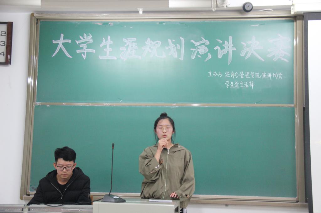 11月10日下午3:30,由经济与管理学院学生会生活部和演讲协会主办的“大学生涯规划演讲比赛”决赛在15102举行。我校学生会副主席、生活部部长及校各学院生活部部长出席并担任评委。