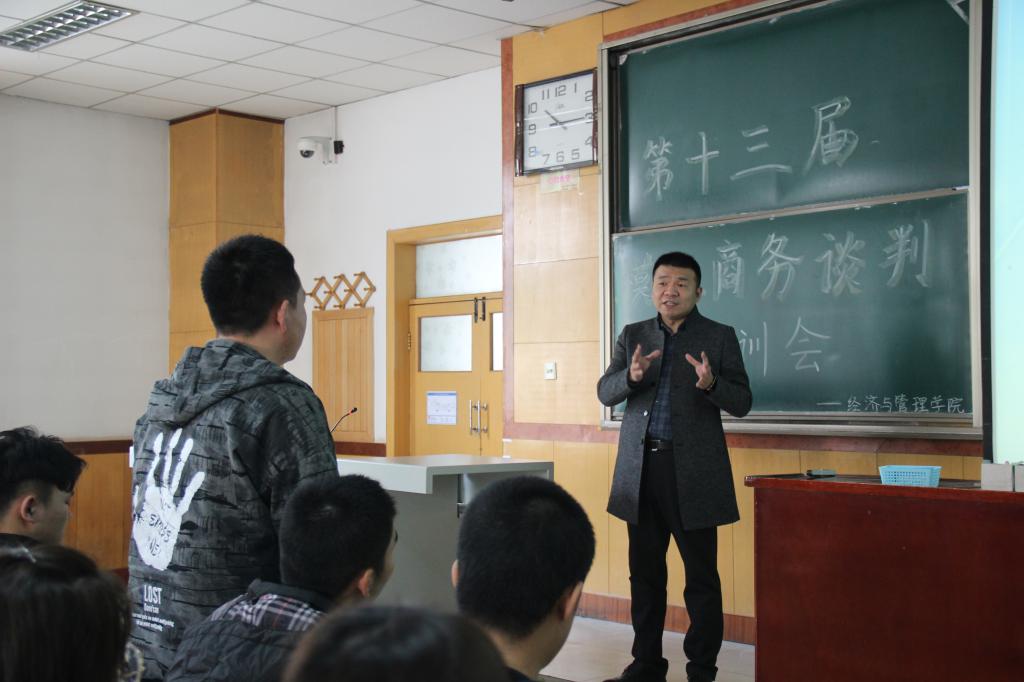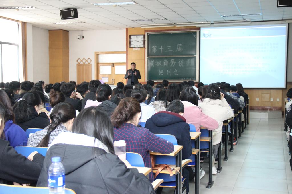 为了培养学生的专业能力和实践能力,经济与管理学院于3月9日上午9:00在09101教室召开第十三届模拟商务谈判培训会,本次培训由我院刘俊生老师主持。
