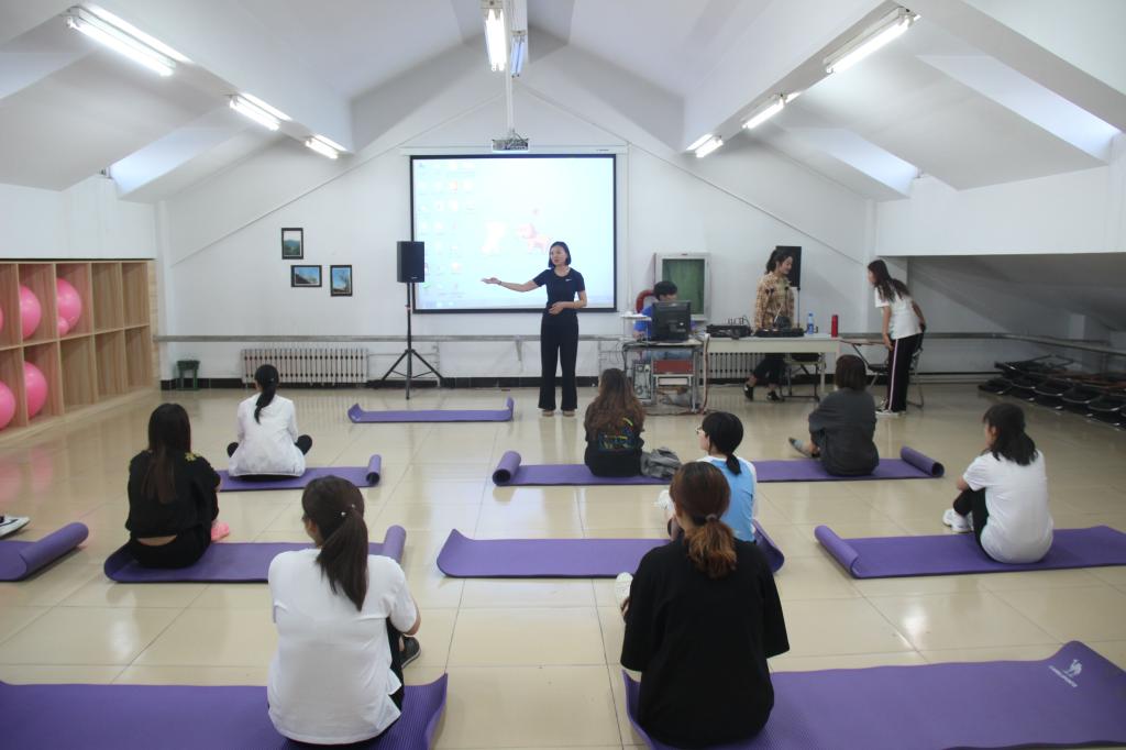 课程开始,瑜伽老师介绍瑜伽是运用易于掌握的技巧,具有改善同学们生理、心理、情感和精神方面的能力,是一种达到身体、心灵与精神和谐统一的运动方式,希望通过瑜伽学习,同学们可以建立正确的动作模式,了解自身身体体型,纠正身体姿态,舒缓心情,从而树立的良好的身心健康。在课程教学中,老师讲解了运动解剖、瑜伽心理学、体式的正位练习及矫正等全面的瑜伽知识,并从最基础的瑜伽动作入手,引导学员一步步训练基础瑜伽,指导学生通过腹式呼吸、调节气息的方式放松身心,并着重强调姿势的重要性。伴随着舒缓悦耳的音乐,老师一边喊着节拍,一边优雅地做示范动作。学生们一丝不苟地学习,尽情舒展身体,感悟这项运动带来的身体与心灵的契合。在学习之余,瑜伽练习活动使得学生们在锻炼身体的同时,也很好地放松了精神状态。