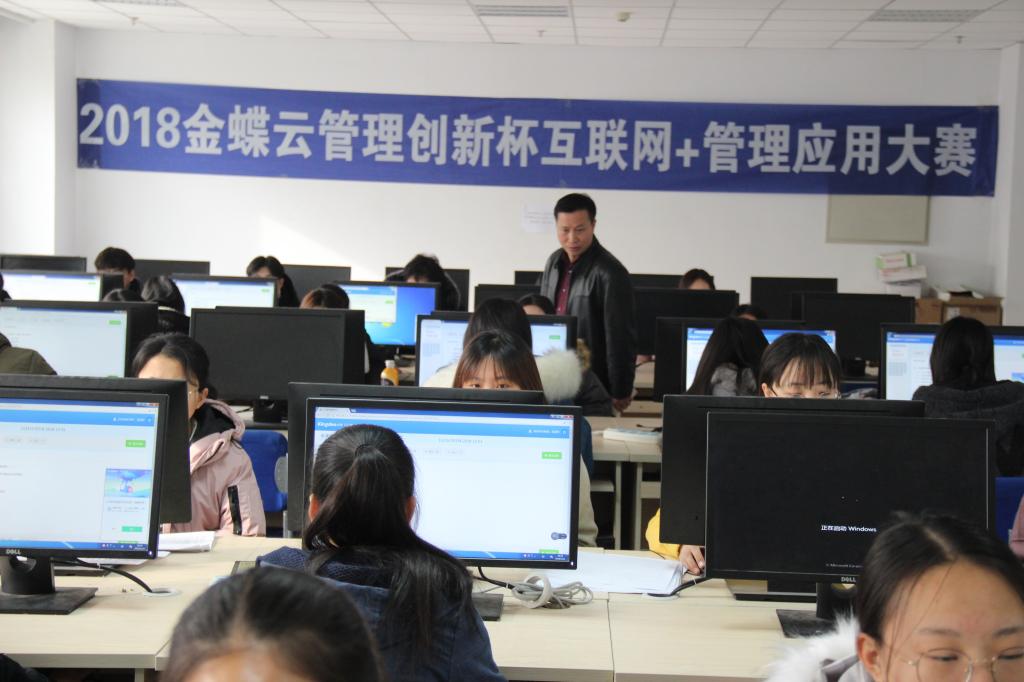 “金蝶云管理创新杯”互联网+管理应用大赛是教育部学校规划建设发展中心启动的全国高校校企合作“双创”实战演练平台主题竞赛,赛制分为校赛、大区赛、全国总决赛,其中,校赛选拔以机考形式,考察参赛队员基础管理、财务会计、供应链管理、生产制造管理等方面的理论知识。
