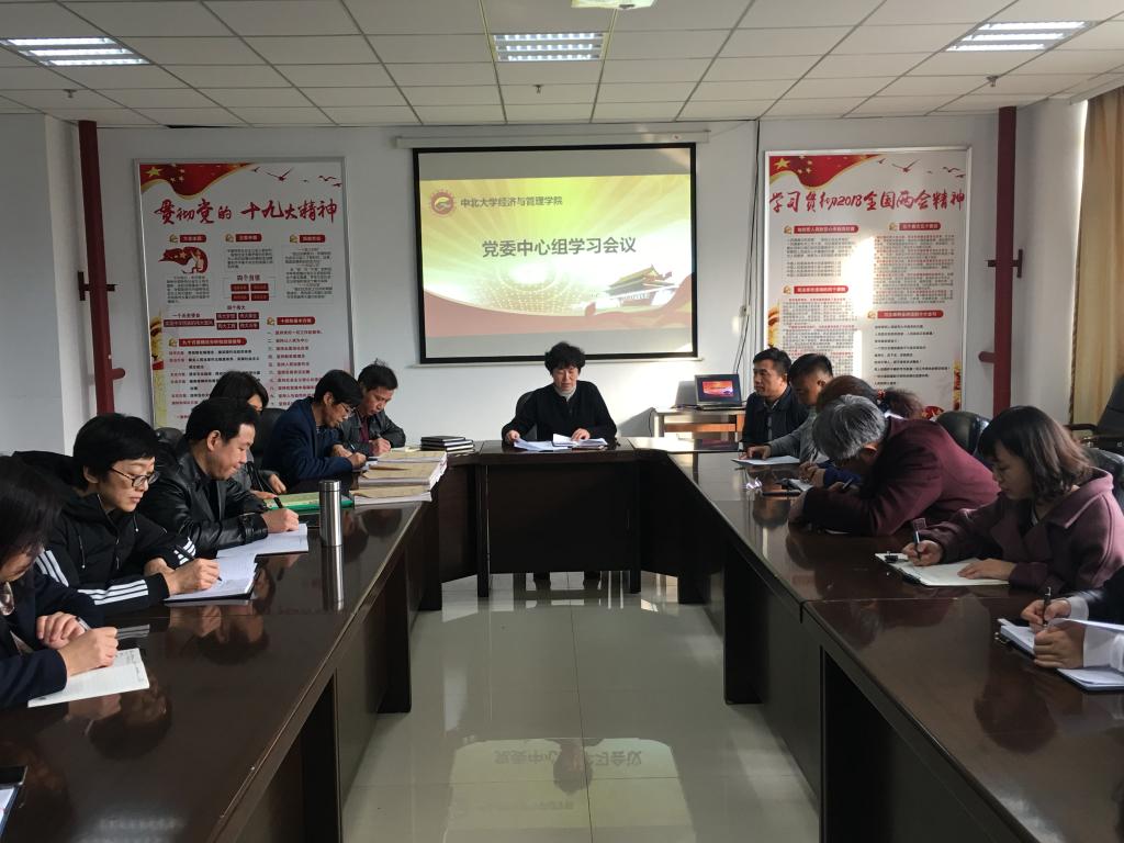 2018年11月6日下午,经济与管理学院党委书记王琳在逸夫楼南楼308室主持召开学院中心组学习会议,传达山西省委十一届六次全会精神,学习了省委书记骆惠宁同志的重要讲话精神。学院领导、院党委成员、院党支部负责人及各科室负责人参加了会议。