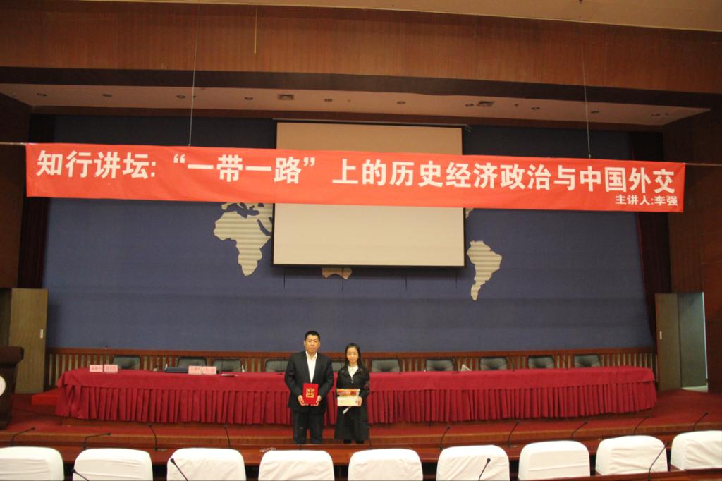之后的讲座中,李教授围绕历史发展、世界政治经济格局变化、外交政策等方面进行了详细讲演。他以板书的方式讲解“丝绸之路”的起源与发展,通过列举我国实施的相关政策与行动,表明我国落实“一带一路”倡议的积极态度。最后,李强教授号召在场学生弘扬晋商诚实守信、敢为人先的开拓创新精神,以己之力为“一带一路”的长远发展做贡献。李强教授博古通今、论据详实,在座的师生兴趣盎然,高度赞扬。