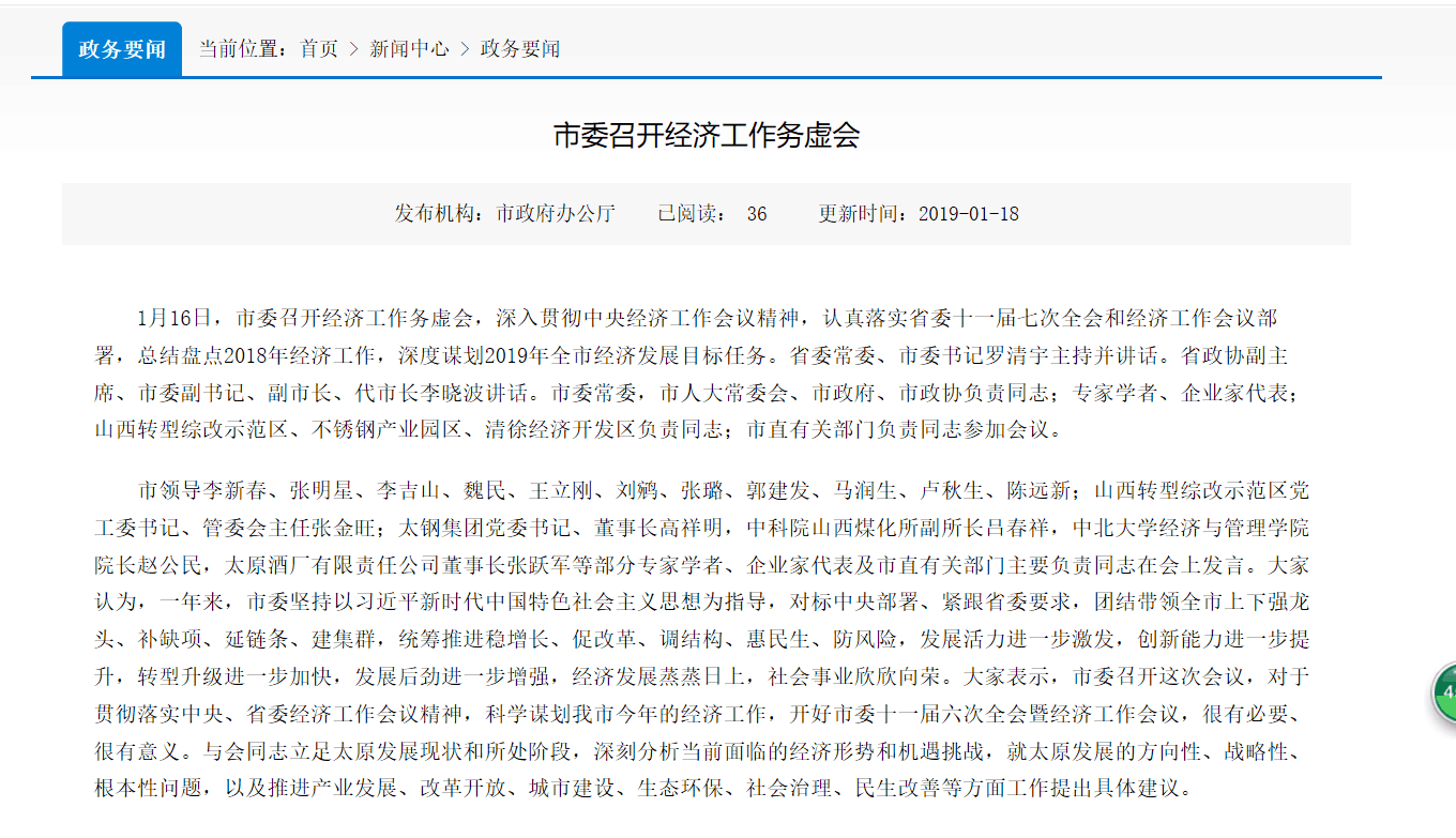 1月16日,市委召开经济工作务虚会,深入贯彻中央经济工作会议精神,认真落实省委十一届七次全会和经济工作会议部署,总结盘点2018年经济工作,深度谋划2019年全市经济发展目标任务。省委常委、市委书记罗清宇主持并讲话。省政协副主席、市委副书记、副市长、代市长李晓波讲话。