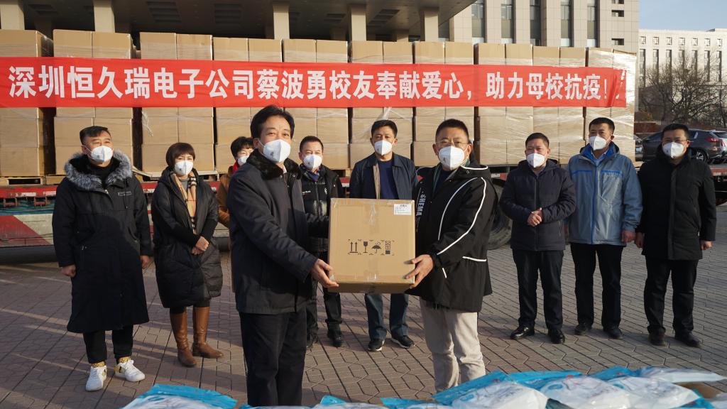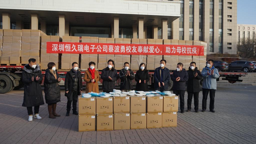 廖华平表示,蔡波勇校友在得知山西新冠疫情有所反复的同时,第一时间就组织人力物力生产50万只KN95口罩,即刻从广东历时两昼夜发运至太原。以实际行动支持学校的抗疫工作,借以感谢母校的栽培之恩。